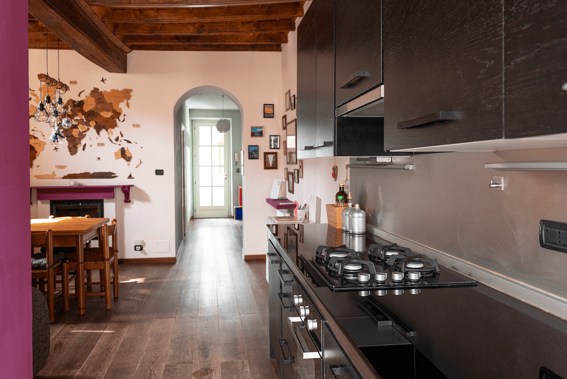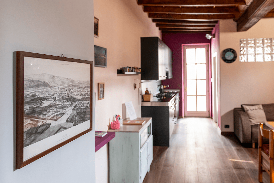 Appartamento con accesso da ballatoio al terzo piano di stabile nel pieno centro della città, dietro Piazza Carlina.