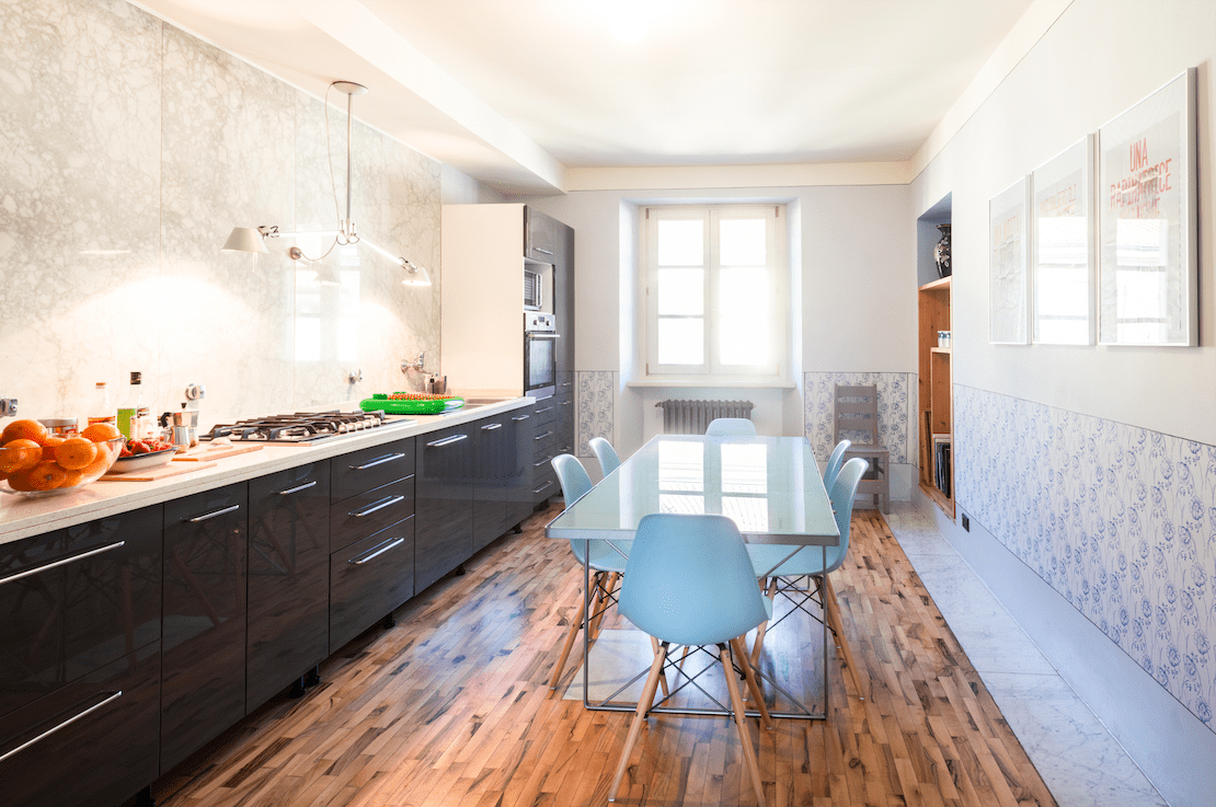 La grande cucina e il vasto soggiorno conferiscono alla casa un ampio respiro e rendono la permanenza in Via San Massimo una vacanza anche se foste in città per lavoro.