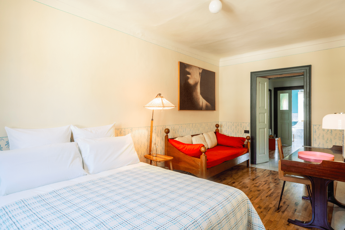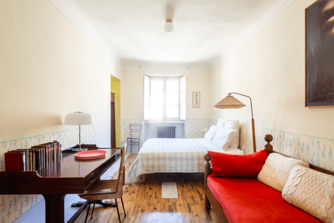 La suite può essere a piacere configurata come stanza matrimoniale e studio o come doppia stanza singola.